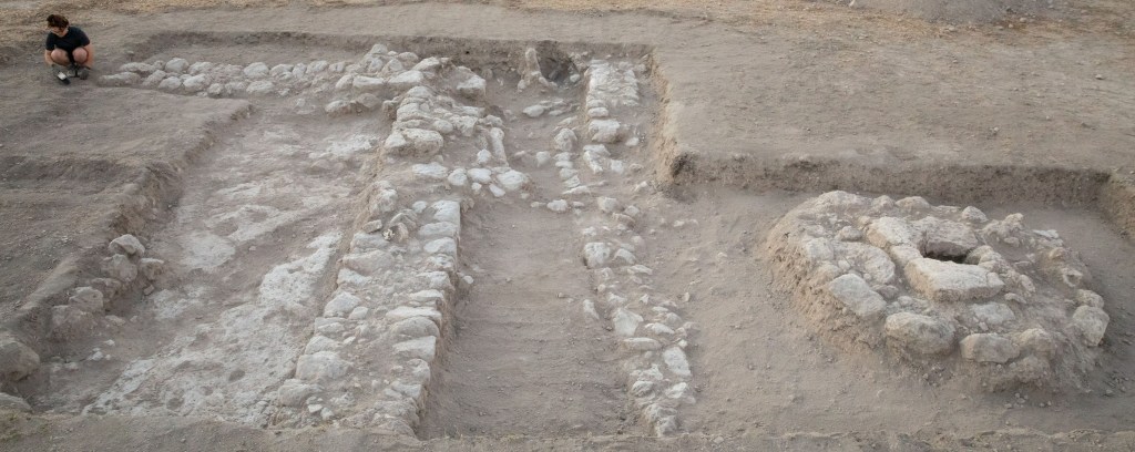Two weeks of excavations have uncovered impressive domestic structures and several installations. One of these (see the photos of Area T3 above) is likely an artificial well or some type of water storage installation. This installation is situated next to a possible building featuring a well-preserved plaster floor.
