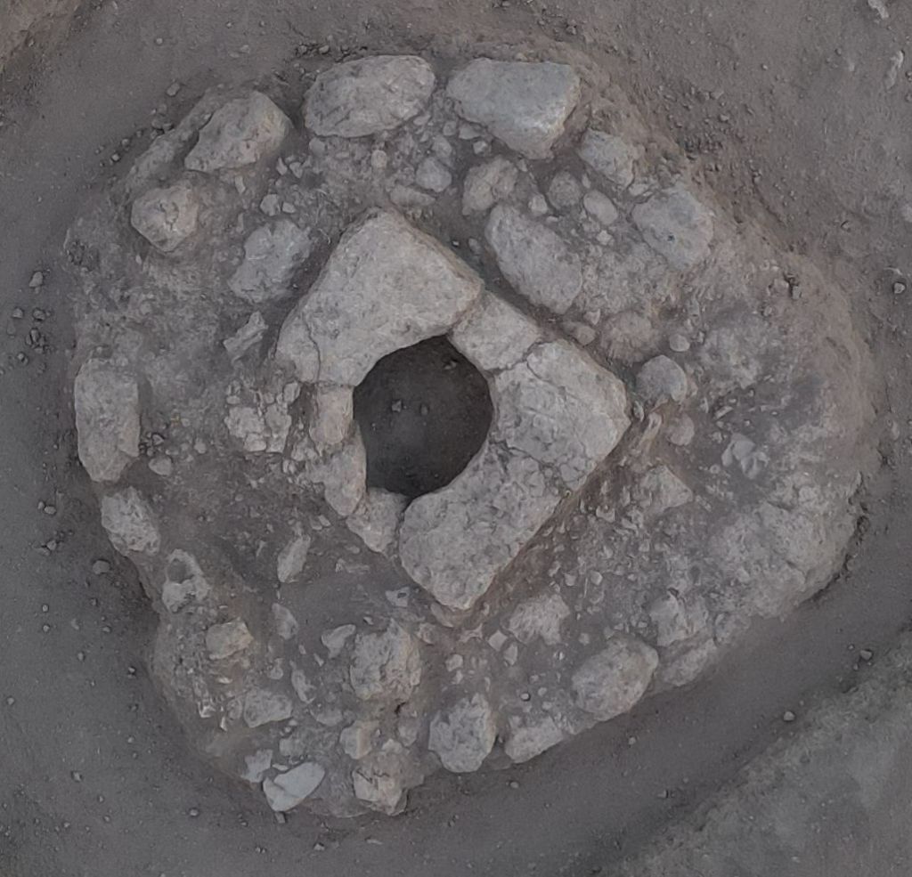 In Area T4 (see the photos below), a cluster of at least three storage silos and a large plastered ground stone were uncovered. Additionally, a segment of a very thick wall, adjoined by two thinner walls, was found. These walls may be connected to the citadel on the Acropolis, but this has yet to be confirmed. The pottery recovered from both areas dated to the Iron Age and the Persian periods.