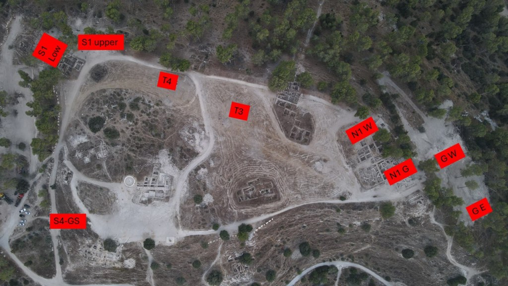 These two brand-new areas are located on the upper, flat part of the tell, just below the Acropolis, several meters south of one of the first excavation areas in Azekah—Area T1. Both areas were opened during the last excavation season in 2024, during the third week of the dig. The goal was to enhance our understanding of the inner area of the tell.