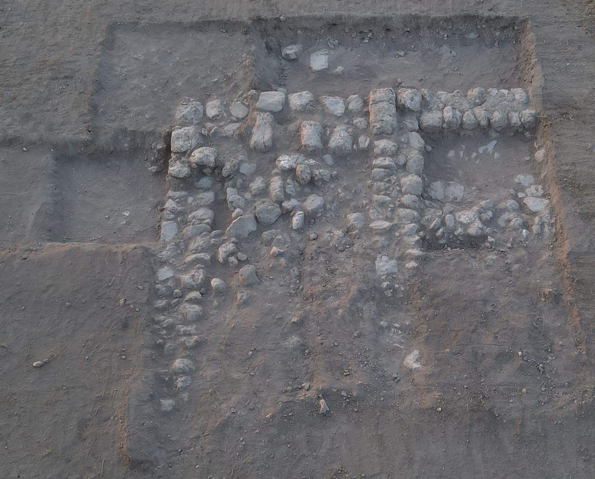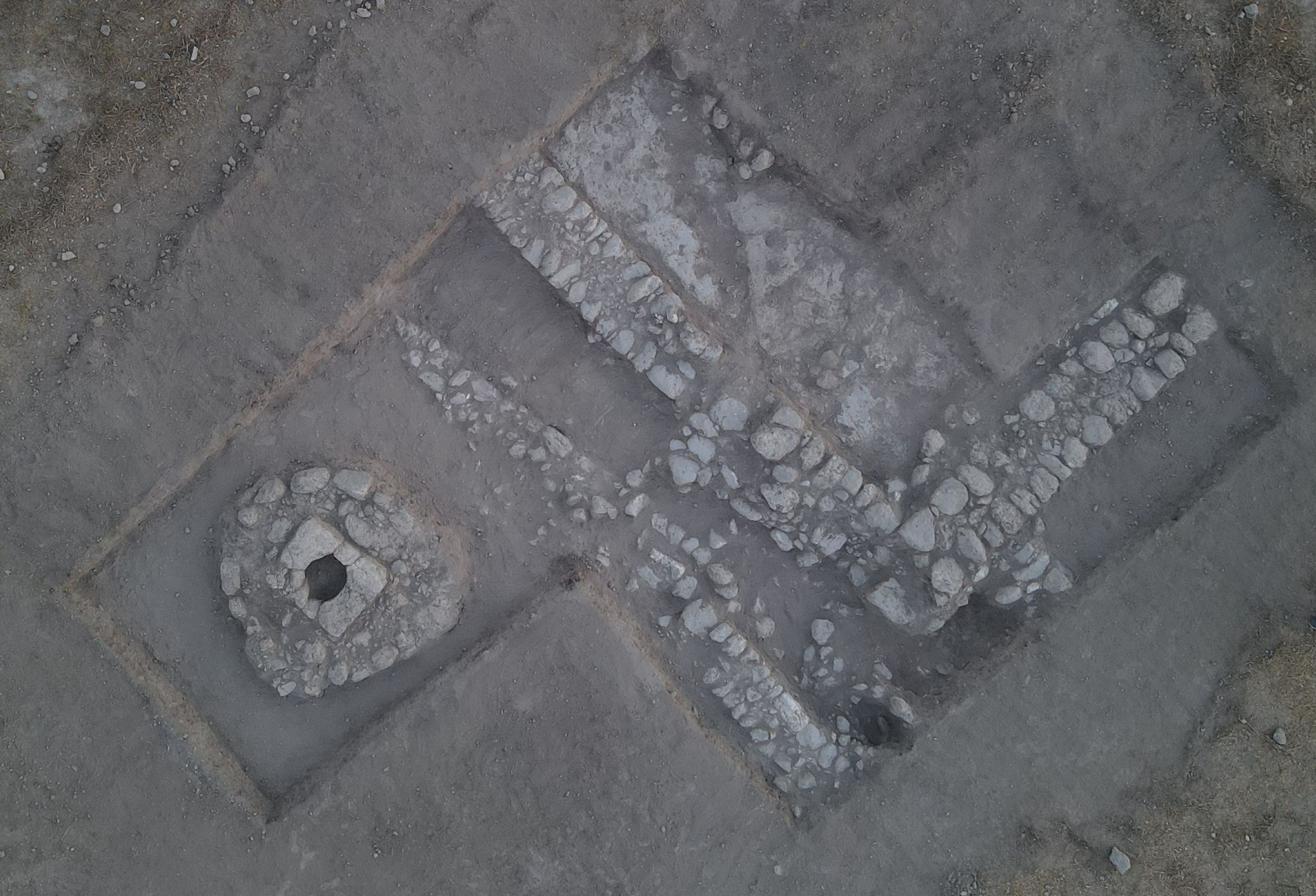In Area T4 (see the photos below), a cluster of at least three storage silos and a large plastered ground stone were uncovered. Additionally, a segment of a very thick wall, adjoined by two thinner walls, was found. These walls may be connected to the citadel on the Acropolis, but this has yet to be confirmed. The pottery recovered from both areas dated to the Iron Age and the Persian periods.