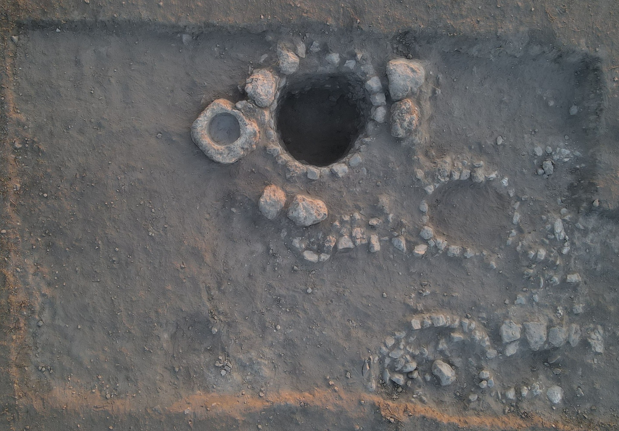 Two weeks of excavations have uncovered impressive domestic structures and several installations. One of these (see the photos of Area T3 above) is likely an artificial well or some type of water storage installation. This installation is situated next to a possible building featuring a well-preserved plaster floor.