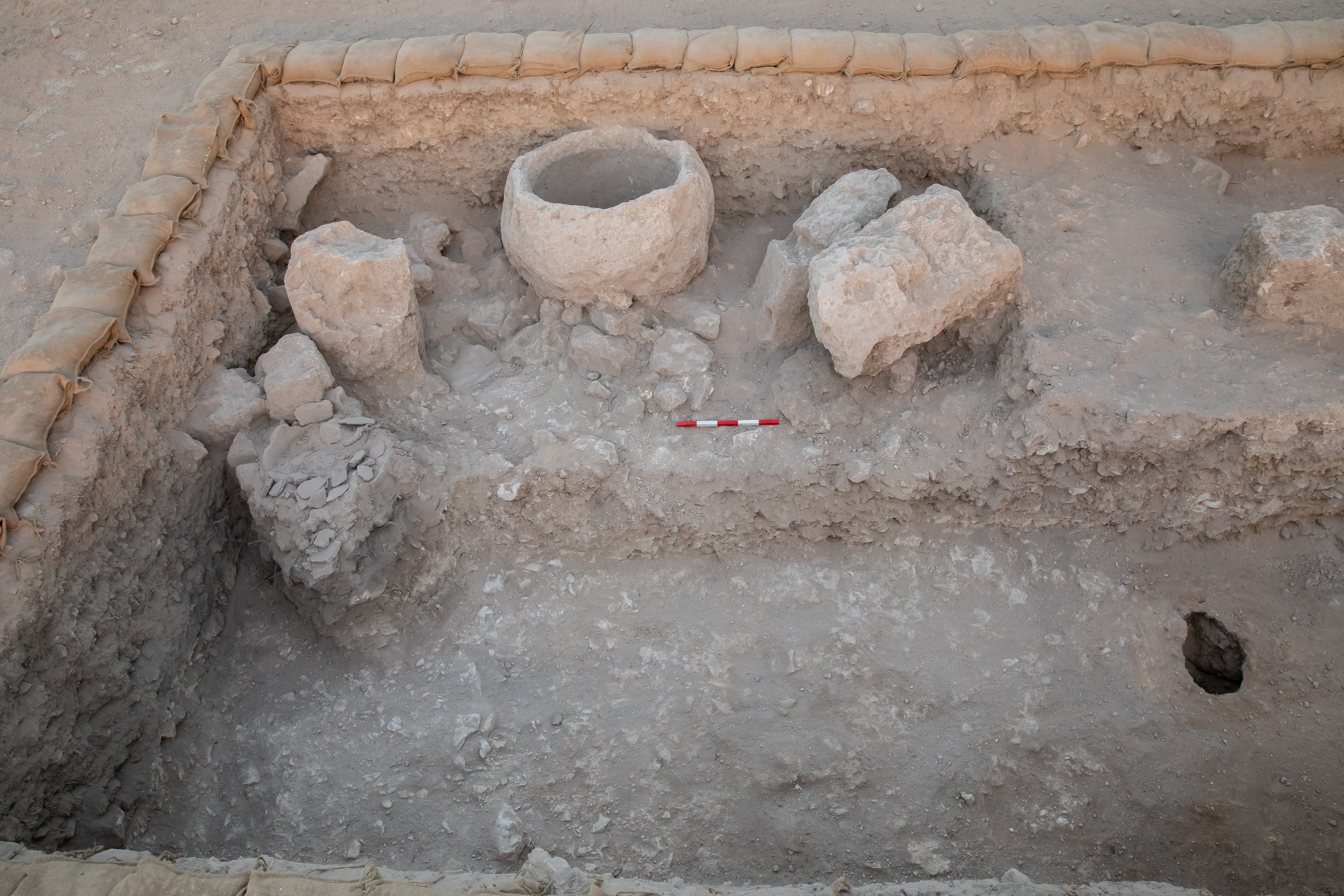 The block of antimony was found in a square to the west of the N1e Middle Bronze Age tower, about half a meter below the surface. Even after the continuation of excavations in this area in the last 2023 excavation season, it still does not have a clear archaeological context. Facilities were found in the area that were part of an industrial complex: a whole layer of stones crushed into a layer that contained a lot of quartz and industrial waste. The chronological horizon of this whole system is the Persian period, and it is possible that it already existed in the Iron IIb. We know of no parallels, and this is the beginning of comparative research.