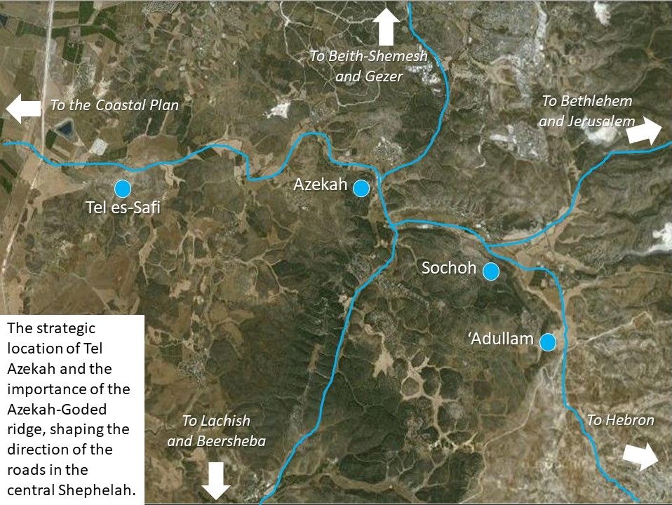 The Acropolis was built on its highest part. To the west of the Acropolis, there is a large area where the natural bedrock is visible. It is reasonable to reconstruct the original top of the hill under the acropolis and on the exposure of the bedrock to its west. It seems that from this area the hill sloped sharply to the south, towards the natural saddle that connects Azekah to the Azekah-Goded ridge.