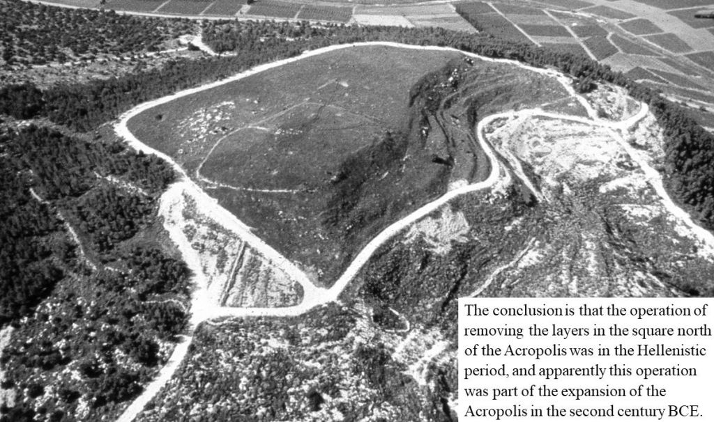 The conclusion is that the removal of the layers in the square north of the Acropolis was conducted in the Hellenistic period, and apparently, this operation was part of the expansion of the Acropolis in the second century BCE.