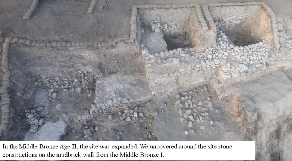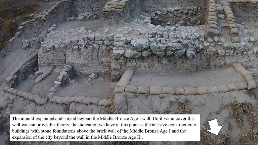 At this point, until we uncover this said wall, the indication we have is the massive construction of buildings with stone foundations above the brick wall of the Middle Bronze Age I and the expansion of the city beyond the wall in the Middle Bronze Age II.